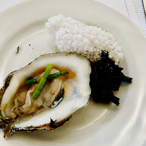 Oysters w/wakame, glasswort garnish, and tapioca pearl cracker